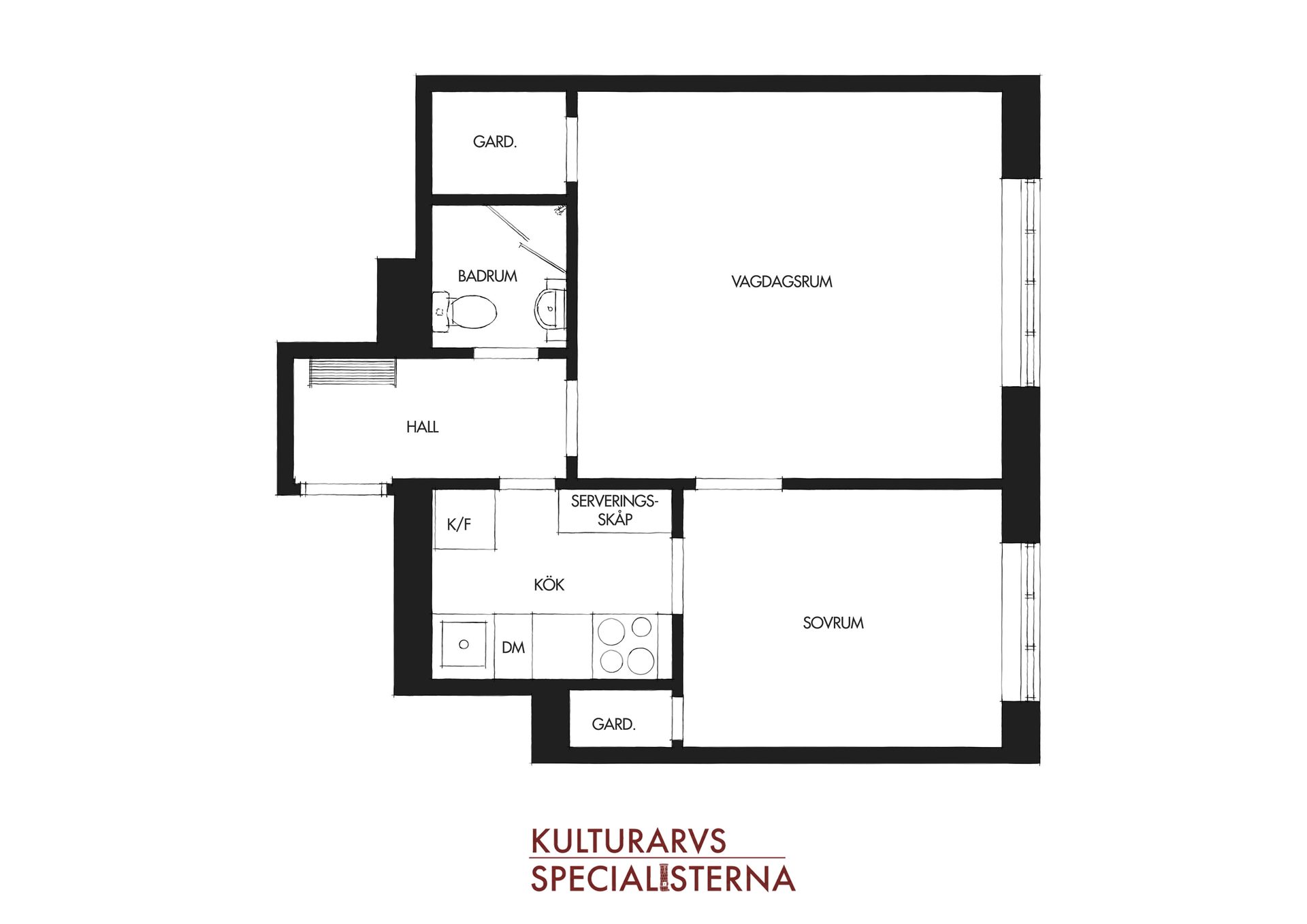 Lägenheten bär på fint bevarade...Välkommen till ett stycke 1930-talsfunktionalism uppe på Söders höjder. Här, i den anrika Brf Marmorn, finnes denna tidstypiska tvårummare om 41.5 välplanerade kvadratmeter. Ljuset är lägenhetens signum, där de breda fönsterpartierna släpper in rikligt med dagsljus och tillsammans med den generösa takhöjden skapar ett luftigt hem för livet att ta plats.